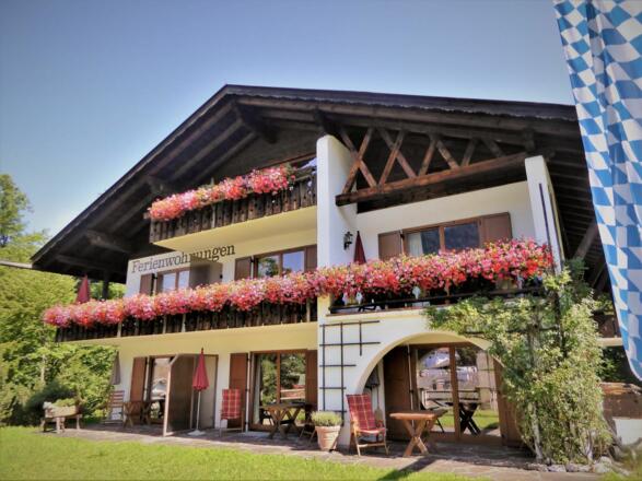 Komfortabel ausgestattete Ferienwohnungen mit Balkon oder Terrasse, alle mit freiem Blick zur Zugspitze und dem Waxensteinkamm. Unser Haus liegt im Zentrum von Grainau mit großem, parkähnlichen Garten in ruhiger, sonniger Lage, Nähe Kurpark, Schwimmbad, Kneippanlage, Wanderwegen, Loipe und Eisplatz. Bushaltestelle in 200m Entfernung, Zugspitzbahn 5 Gehminuten. Die Ferienwohnungen sind ausgestattet mit Sat-TV, Föhn, in jeder Küche: Ceranfeld, Spülmaschine, Kühlschrank, Kaffeemaschine etc.. in manchen Wohnungen ist ein Backrohr. Allergikergerecht! Parkplätze am Haus. Neu: Aromagarten!